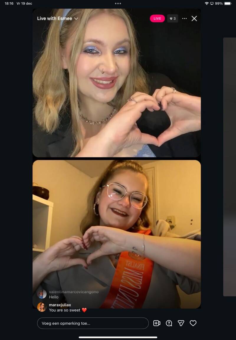 Elke keer leer ik weer iets nieuws: hoe ik mij het beste kan presenteren en performen, zowel op het podium als online, en hoe ik mijn stem effectief kan gebruiken. Deze ervaringen helpen mij om steeds zelfverzekerder te worden en verder te groeien in mijn uitstraling en communicatie.